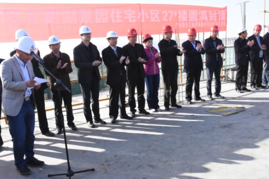 在封頂儀式上,蘭州新區職業教育園區建設投資發展有限公司總經理路養鋒同志首先代表蘭州新區職業教育園區建設投資發展有限公司向前來參加封頂儀式的全體領導同志表示熱烈的歡迎,向參與文曲湖景園住宅小區項目建設的每一位工作者表示衷心的感謝,他在講話中指出,甘肅建投作為職教園區商業綜合配套區域項目建設的主力軍,應把27#樓主體封頂當作新的起點,繼續發揚團結協作,銳意進取精神,加快推進園區內各項目建設進度,確保全年目標任務圓滿完成,保障園區配套設施按期投用,為學校入駐、為園區發展、為新區社會發展做出更大的貢獻。